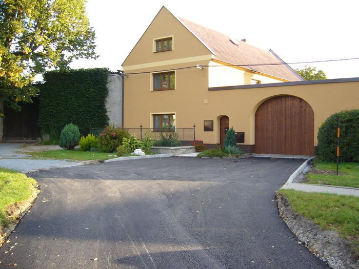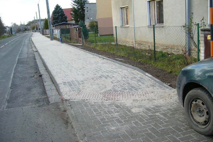 - Vydláždění vjezdů k rodinným domům podél hlavní silnice ve středu obce a asfaltový povrch na vjezdy na malé straně