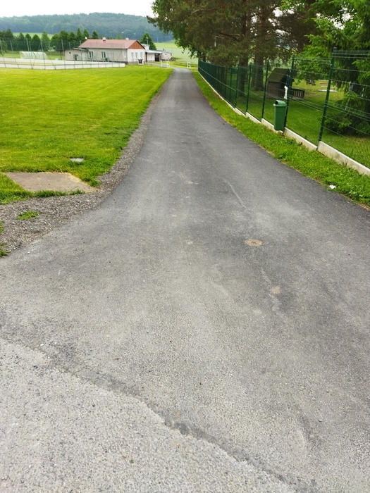 - Nový asfaltový povrch na účelové komunikaci ke hřišti
